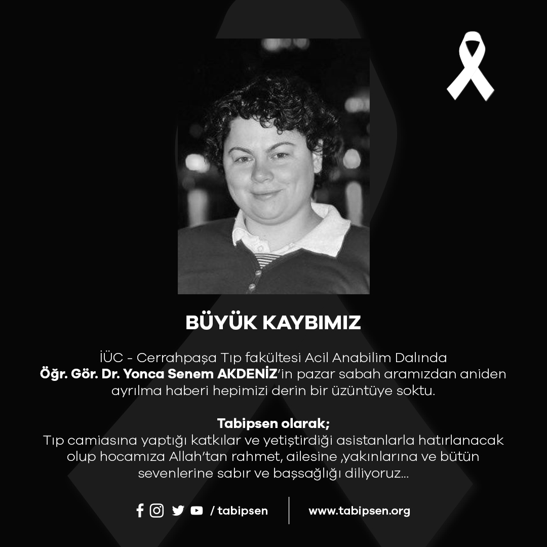 Öğr. Gör. Dr. Yonca Senem AKDENİZ’in pazar sabah aramızdan aniden ayrılma haberi hepimizi derin bir üzüntüye soktu.
